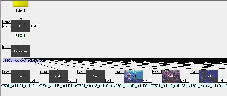 Remember how ReAuthorist works? It makes dummy cells itself for any PGCs that it could not find in your Working Directory, but that it thinks are supposed to be in the IFO. Well we omitted PGCs 1 and 2 from being demuxed. So ReAuthorist should have created dummies for them. So going back to your track list, expand VTS_01_PGC_001. One scene exists in it, and it's a dummy. Expand VTS_01_PGC_002. One cell again, another dummy. We'll use on of these dummies for the dummy cell we need in the Scenario. I chose the one in VTS_01_PGC_002 because it's oddly enough named vobid1_cell1.