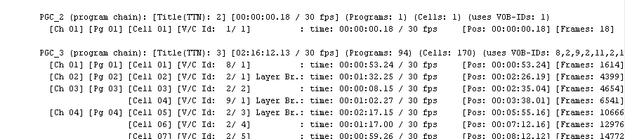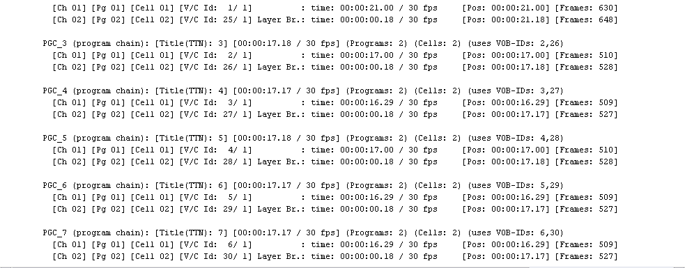 PGC_1 (program chain): [Title(TTN): 1] [00:00:xx.xx / 30 fps] (Programs: 3)